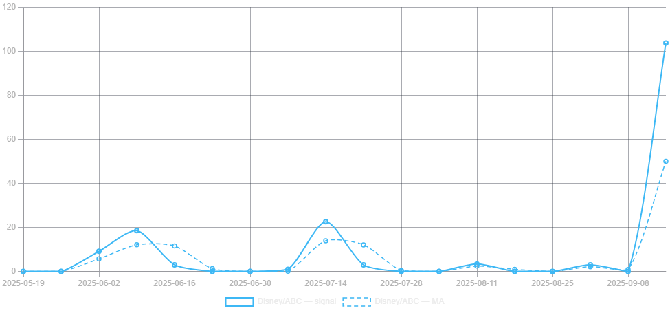We can see in the chart above how divisive language has skyrocketed for Disney and ABC in the past week.